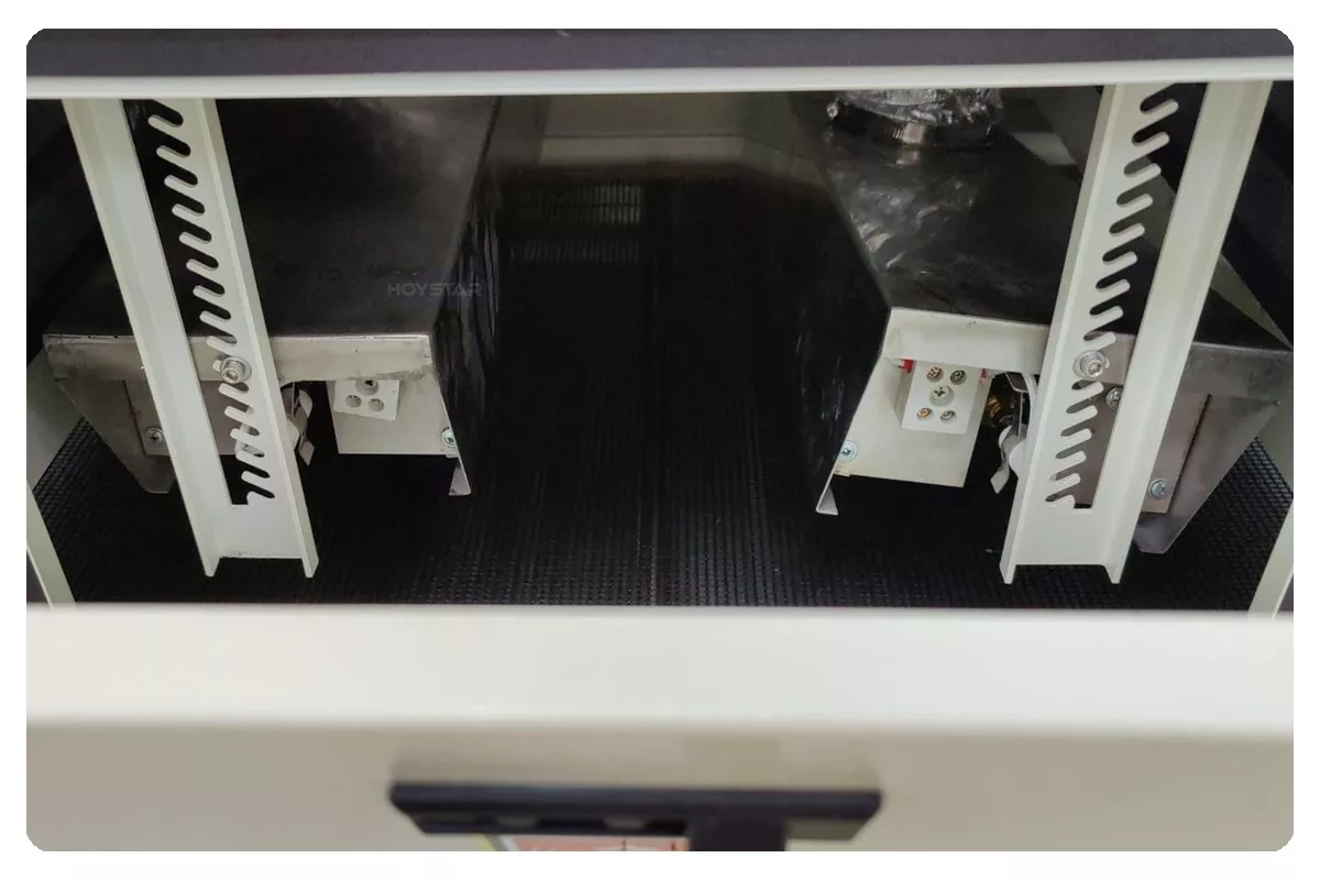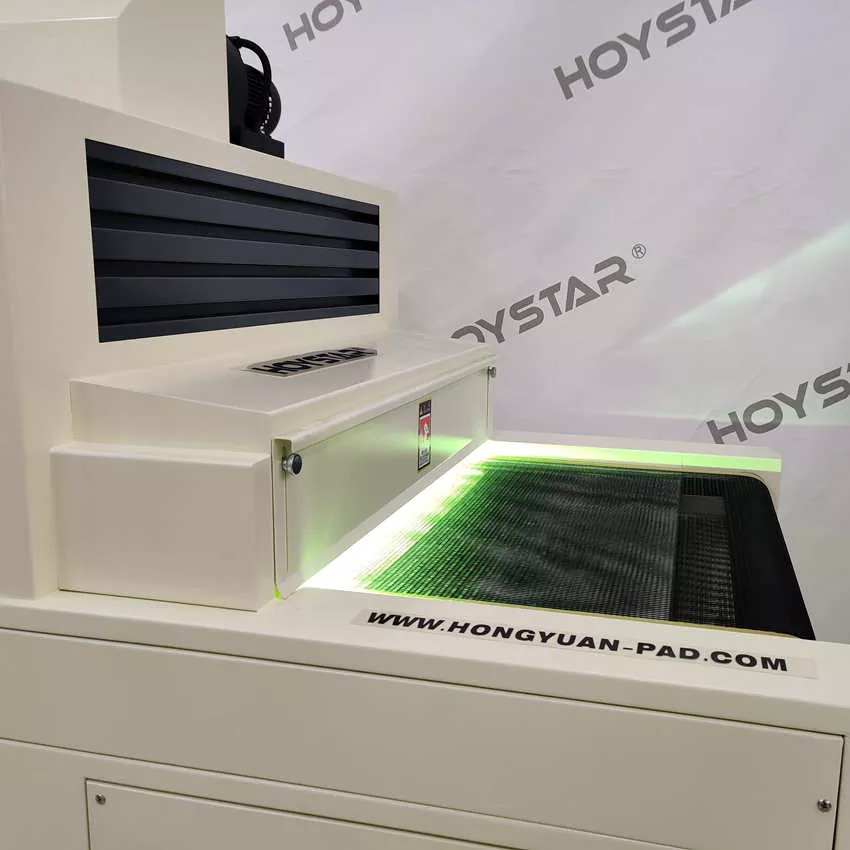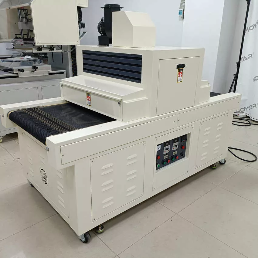 சீனாவில் தொழில்முறை உற்பத்தியாளராக, நாங்கள் உங்களுக்கு உயர் திறன் கொண்ட HOYSTAR 1000mm அகல கன்வேயர் UV க்யூரிங் இயந்திரத்தை வழங்க விரும்புகிறோம், காகிதம், PVC மற்றும் பிற மென்மையான அல்லது மெல்லிய அடி மூலக்கூறுகள் உட்பட பல்வேறு பொருட்களில் அச்சிடப்பட்ட UV மை உலர்த்துவதற்கு இயந்திரம் பொருத்தமானது. தடையற்ற UV மை க்யூரிங் அடைய இயந்திரத்தை ஸ்கிரீன் பிரிண்டர்களுடன் எளிதாக இணைக்க முடியும். நிலையான செயல்திறன் மற்றும் பரந்த இணக்கத்தன்மையுடன், இது பல்வேறு அச்சிடும் பயன்பாடுகளில் வாடிக்கையாளர்களின் தொழில்முறை குணப்படுத்தும் தேவைகளை திறம்பட பூர்த்தி செய்கிறது.