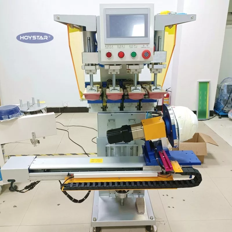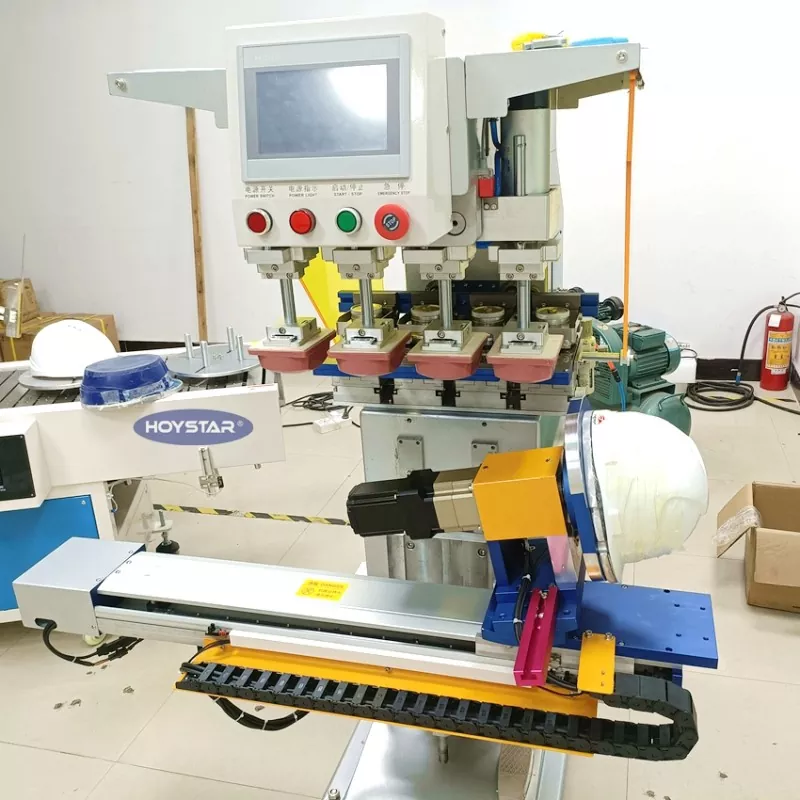 சீனாவில் உற்பத்தியாளர்கள் மற்றும் சப்ளையர்களில் ஒருவரான Dongguan Hoystar Machinery Co., Ltd. இலிருந்து ஹெல்மெட்டிற்கான தனிப்பயனாக்கப்பட்ட 4 கலர் பேட் பிரிண்டிங் மெஷினை வாங்கவும். ஹெல்மெட்டிற்கான இந்த HOYSTAR 4 கலர் பேட் பிரிண்டிங் மெஷின் PLC டச் ஸ்கிரீன் கண்ட்ரோல் பேனல் பொருத்தப்பட்டுள்ளது. இந்த இயந்திரம் தானியங்கி ரோட்டரி அச்சிடலுக்கான சர்வோ மோட்டார் கட்டுப்பாட்டைக் கொண்டுள்ளது, ஹெல்மெட்டுகளின் 1 பக்கம், 2 பக்கங்கள் அல்லது 4 பக்கங்களில் அச்சிடுவதற்கான விருப்பங்களை வழங்குகிறது. வொர்க்டேபிள் இடது/வலது, ரோட்டரி ஏஞ்சல்,  தயாரிப்பு உயரங்களைச் சரிசெய்யலாம். ஒவ்வொரு அச்சிடும் தலையும் சுயாதீனமாக சரிசெய்யக்கூடியது மற்றும் தனித்தனியாக அமைக்கப்படலாம்.
