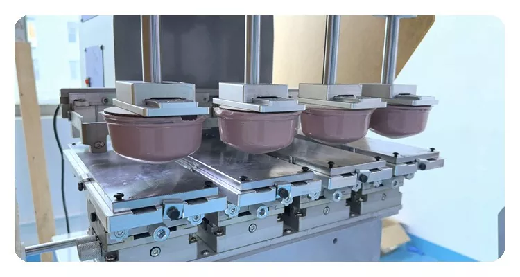 • ஹெல்மெட்டுக்கான 4 கலர் பேட் பிரிண்டிங் மெஷின்ஹெல்மெட்டுக்கான 4 கலர் பேட் பிரிண்டிங் மெஷின்