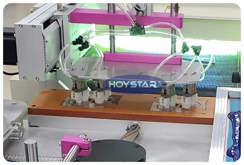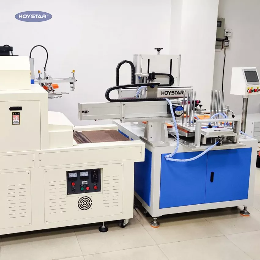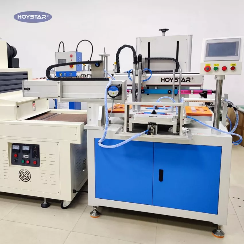 சீனாவில் ஒரு தொழில்முறை உற்பத்தியாளராக, HOYSTAR ஆட்சியாளர்களுக்கு தானியங்கி திரை அச்சிடுதல் இயந்திரத்தை வழங்குகிறது. அதிவேக சுழலும் வேலை அட்டவணை பொருத்தப்பட்ட இயந்திரம், அதிர்வுகள் ஏதுமின்றி அதிவேகமாக இயங்கும். உயர் துல்லியமான சர்வோ மோட்டார் மற்றும் கேம் டிவைடர் மூலம் பிரிண்டிங் மற்றும் கன்வெயிங் சிஸ்டம் தானாகவே அச்சிடுவதை முடிக்கவும், உழைப்பைக் குறைக்கவும், செயல்திறனை மேம்படுத்தவும். இந்த இயந்திரத்தின் அதிகபட்ச அச்சிடும் வேகம் 2500PCS/Hr முதல் 5000PCS/Hr வரை இருக்கும். ஆட்சியாளர்கள், சமபக்க முக்கோண ஆட்சியாளர்கள், டெல்டா ஆட்சியாளர்கள் மற்றும் ப்ரோட்ராக்டர்கள் போன்ற ஸ்டேஷனரி தயாரிப்புகளின் பெரிய அளவிலான அச்சிடலுக்கு இது முக்கியமாகப் பொருந்தும்.