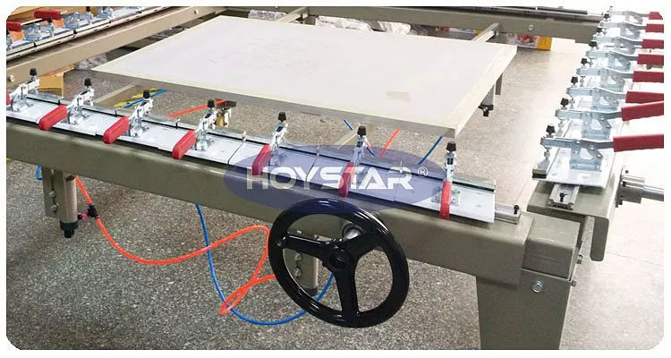 திரை துணி மற்றும் திரை சட்டத்தின் அளவிற்கு ஏற்ப ஸ்கிரீன் ஸ்ட்ரெச்சரின் அலமாரியின் அளவை இயந்திரம் சுருக்கலாம் அல்லது விரிவாக்கலாம். நிலையை உருவாக்குவது மிகவும் வசதியானது.