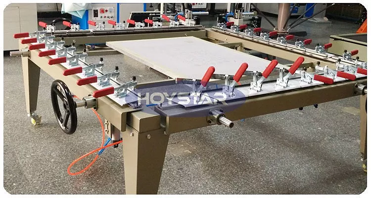 ஸ்கிரீன் ஸ்ட்ரெச்சிங் மெஷின் அலுமினியம் அலாய் மூலம் செய்யப்பட்ட அதிக வலிமை கொண்ட சட்டத்தை ஏற்றுக்கொள்கிறது
