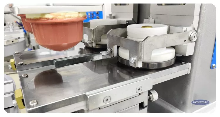 சீனாவில் தொழில்முறை உற்பத்தியாளராக, நாங்கள் உங்களுக்கு அதிக திறன் கொண்ட HOYSTAR டூ கலர் ரோட்டரி டேபிள் பேட் பிரிண்டிங் மெஷினை வழங்க விரும்புகிறோம். இந்த இயந்திரம் தயாரிப்புகளுக்கான தொடர்ச்சியான இரண்டு வண்ண திண்டு அச்சிடலை செயல்படுத்துகிறது, ஒரு வண்ணப் பதிவு ஒரு சுழற்சியில் நிறைவு செய்யப்படுகிறது. ஷட்டில் வகை பேட் பிரிண்டர்களுடன் ஒப்பிடும்போது, ​​இதன் வேகம் மிக வேகமாக இருக்கும். எலக்ட்ரானிக் பொருட்கள், பிளாஸ்டிக் ஷெல்கள், வன்பொருள் பொருட்கள், எழுதுபொருட்கள் மற்றும் சிறிய கலைகள் மற்றும் கைவினைப்பொருட்களின் மேற்பரப்பில் உள்ள சின்னங்கள் உள்ளிட்ட பல்வேறு பொருட்களில் அச்சிடுவதற்கு ஏற்றது, உங்கள் இரு வண்ண அச்சிடல் கோரிக்கைகளை பூர்த்தி செய்யும்.