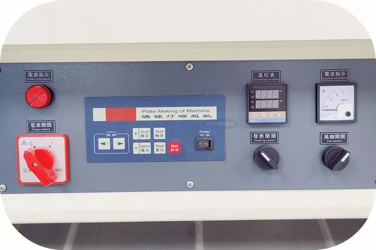 UV Vacuum Exposure Machine with Drying for Screen Printing ஒரு ஆபரேஷன் பேனல் பொருத்தப்பட்டுள்ளது, இயந்திரத்தின் வெளிப்பாடு நேரம் மற்றும் உலர்த்தும் நேரம் தேவைகளுக்கு ஏற்ப சுதந்திரமாக சரிசெய்யப்படலாம்.
