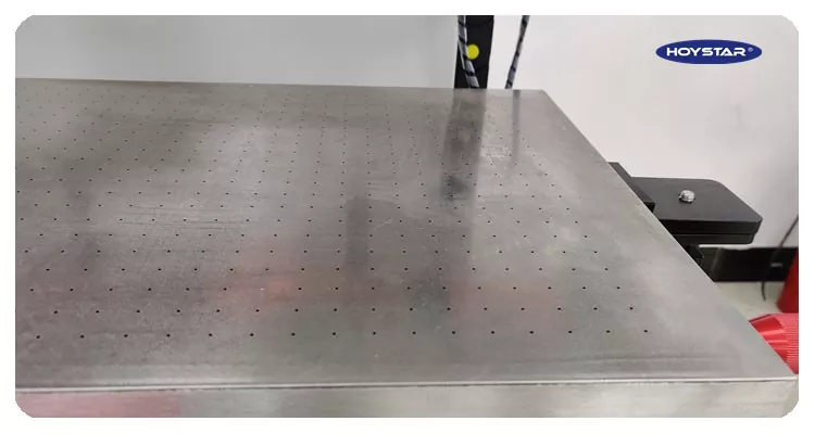 12. சமமாக விநியோகிக்கப்பட்ட உறிஞ்சும் துளைகள் மற்றும் துல்லியமான பதிவுக்கு வலுவான வெற்றிட உறிஞ்சுதலுடன் கூடிய அதிக வலிமை வேலை அட்டவணை.